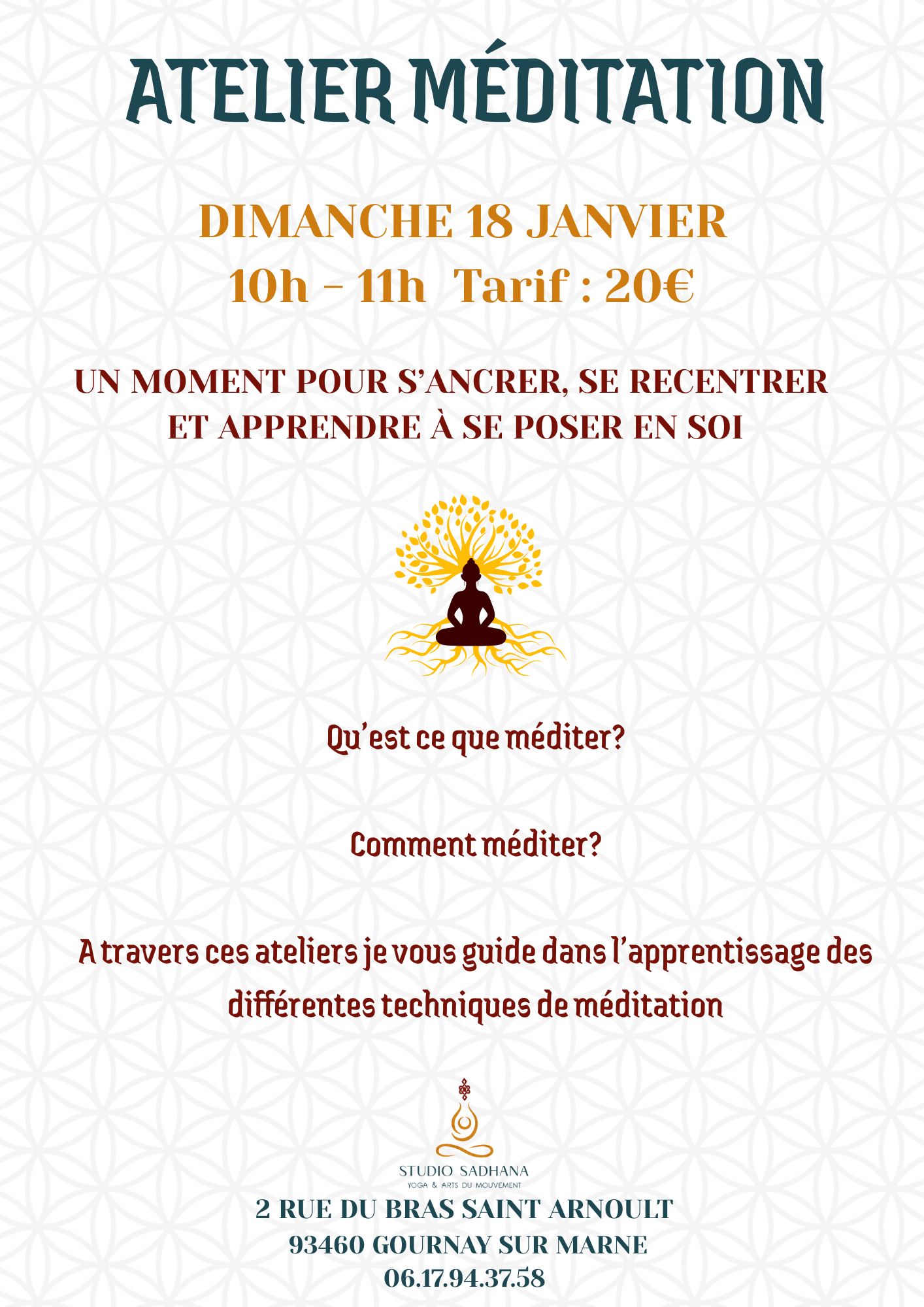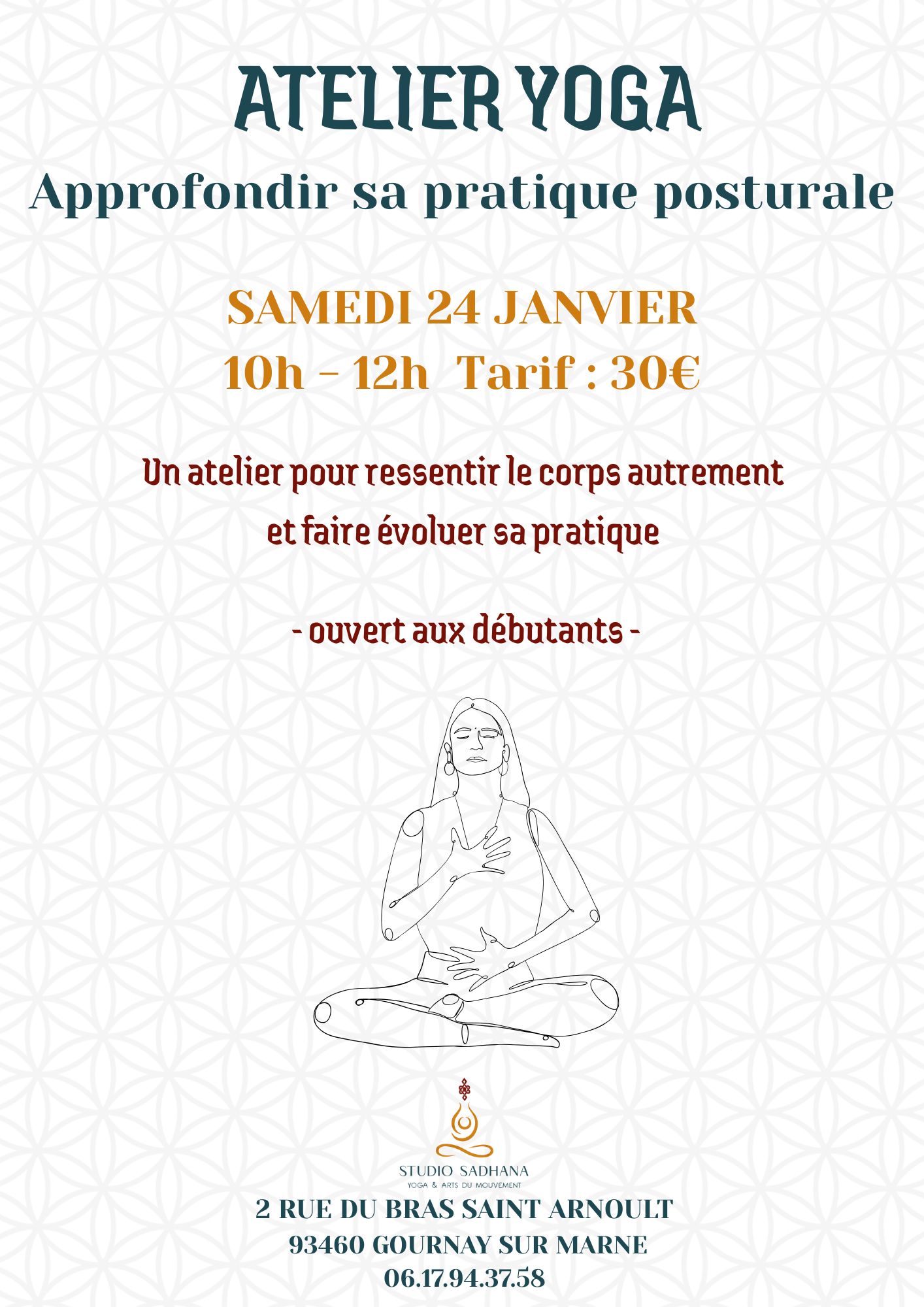 Cet espace vous est dédié, il est le lieu où vous vous rencontrez, où vous reconnectez avec l’essentiel, votre corps et votre esprit. Studio Sadhana c’est emprunter une voie, soutenus par une équipe et une communauté joyeuse et bienveillante. Au coeur de Gournay sur Marne, ville paisible du 93 mais non moins urbaine et effervescente, nous vous proposons un lieu de pratiques corporelles, un lieu pour vous ressourcer mais aussi pour échanger et partager. Vous trouverez dans nos locaux des cours et ateliers de Yoga, de Mouvement et Mobilité, de Sophrologie et bien plus encore….